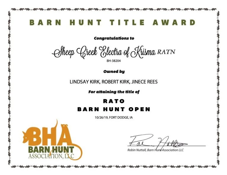 CH Sheep Creek Electra of Krisma CA RATO
